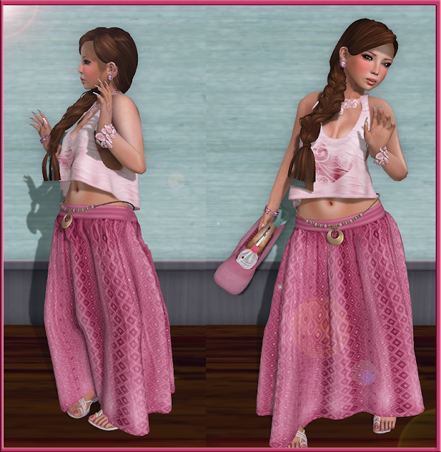 Even better than a good trip around the grids is looking good while doing it. The Pink Ribbon Fair is definately helping me in my mission to make pink the new black (goes with everything) with this cute outfit from PARADIS. If you go to the mainstore you can get a cute little bag with a little bit of hunting (shown below it wasn't agree-ing with my exploring) but the outfit can only be found at the Pink Ribbon Fair so don't hesitate to go.It comes with the Top and Skirt I have on as well as the belt shown and a bracelet that isn't shown but message me inworld and I'll give you a peek.